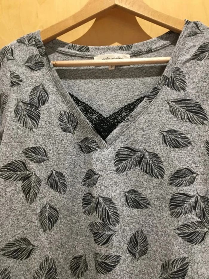 Tee-shirt grain de malice gris chiné Dentelle sur le décolleté Impression feuilles légèrement brillantes Manches 3/4 Jamais porté Taille S 📦 📦 Envoi rapide 👚👚 Dressing trié par # dans "à propos" #caro42230teeshirt #caro42230_teeshirt #caro42230_teeshirttaille36 #caro42230_teeshirttailleS #caro42230graindemalice #graindemalice #faisladifference #caro42230