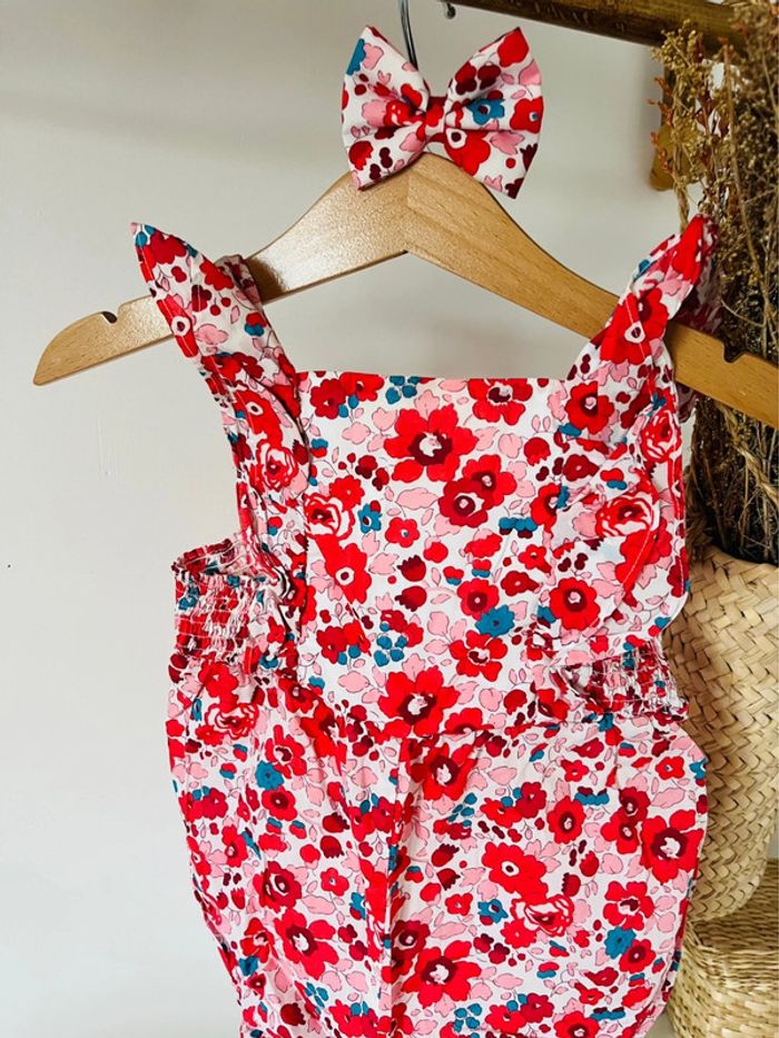 Barboteuse Jacadi +barrette 18 mois Liberty cerise Comme neuf
