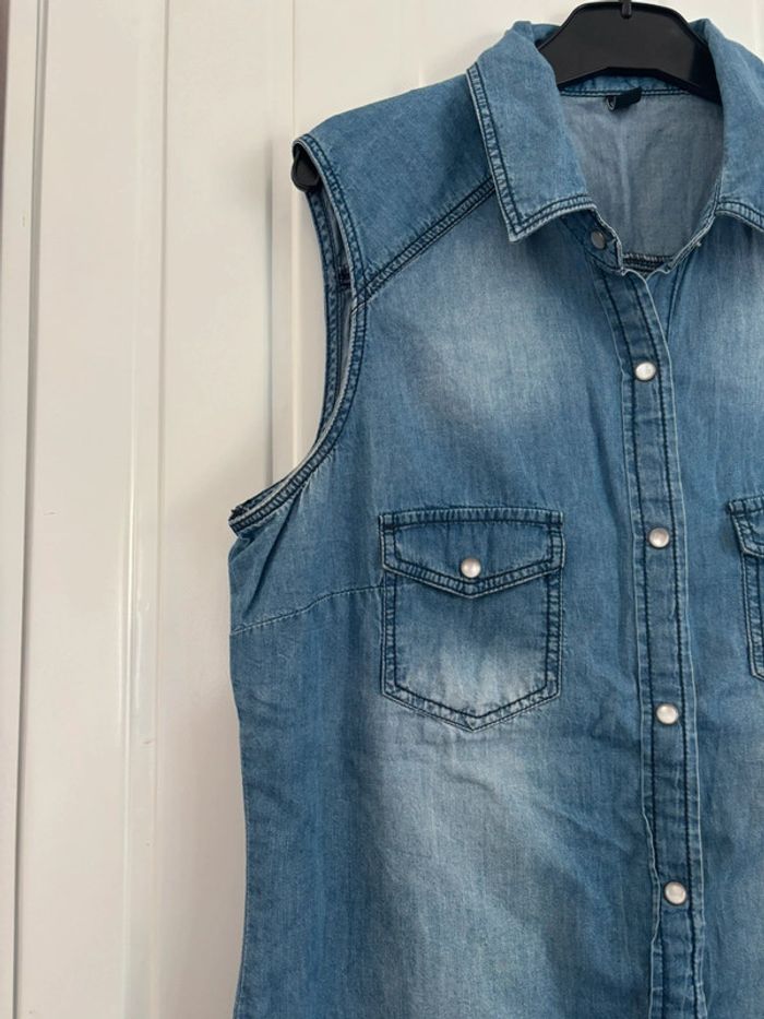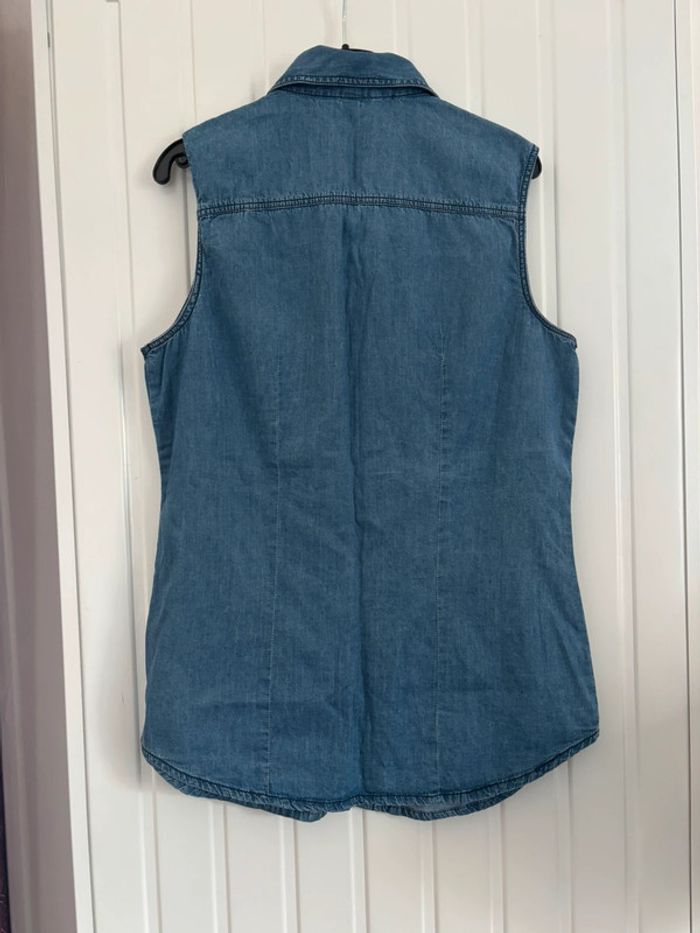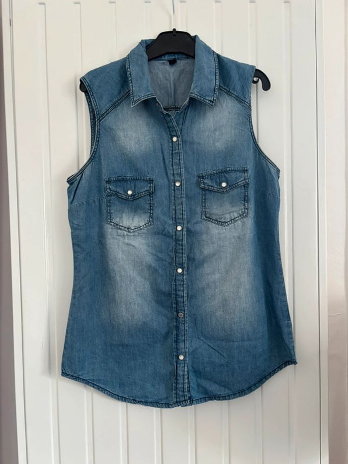 Chemise légère sans manche effet jean, parfaite pour l’été, de la marque Pimkie, pour une taille 36, 100% coton, déjà porté mais reste en bon état