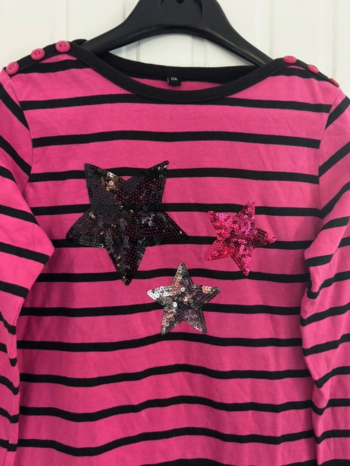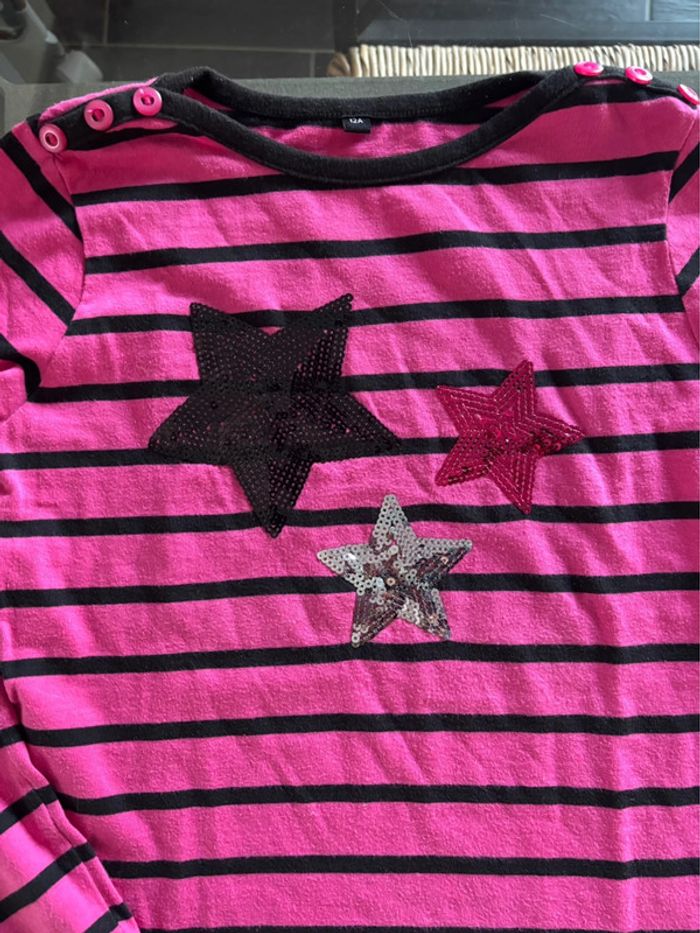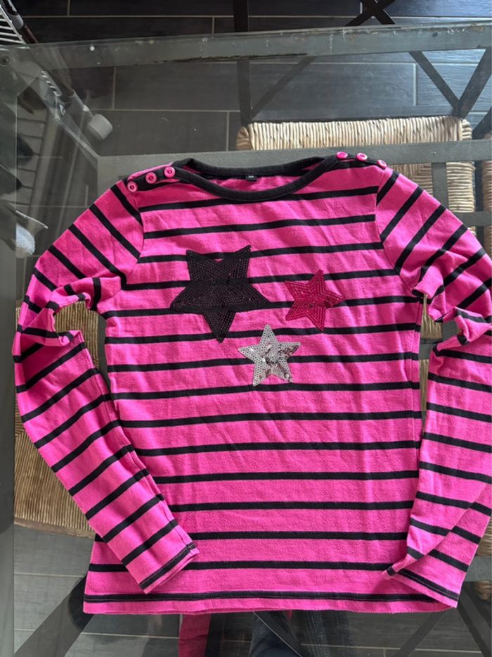 Tee-shirt manche longue fille avecs dessin étoile en sequins brillant Je ne me souviens plus de la marque Porté mais en bon état Taille 12 ans