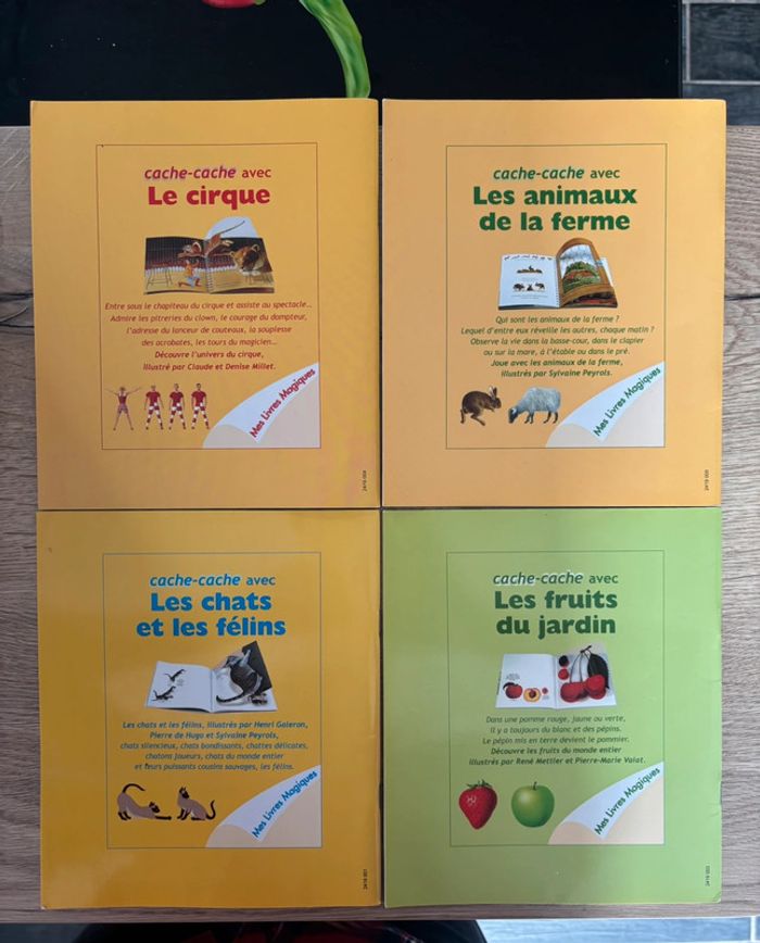 Lot Mes livres Magiques - cache-cache avec le cirque - cache-cache avec les chats et les félins - cache-cache avec les fruits du jardin - cache-cache avec les animaux de la ferme Aux éditions Atlas Jeunesse, ils sont en bon état et idéal pour les enfants puisqu’ils poussent des pages transparentes qui se superposent sur les images #livresvvirg5