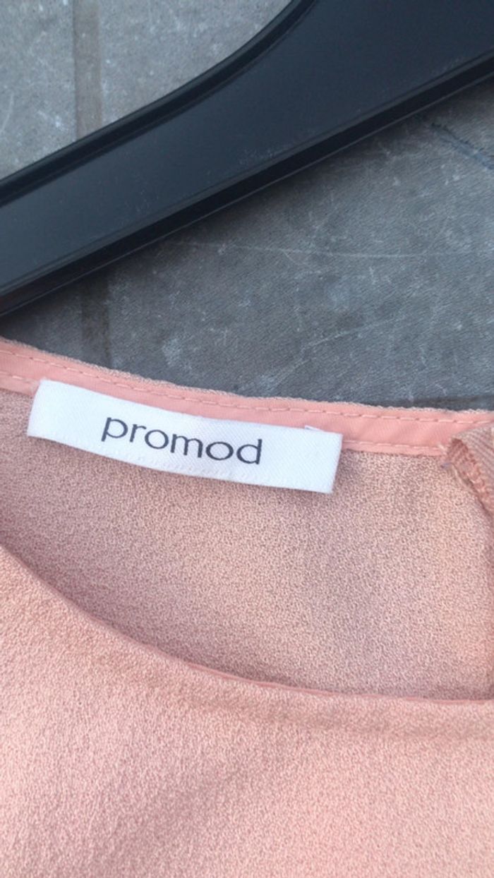 T-shirt Promod évasé de couleur vieux rose avec fermeture éclaire dans le dos, en bon état, pour une taille 34