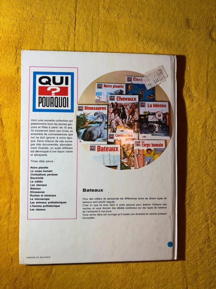 Livre sur les Bateaux Collection Qui Pourquoi ? Tranche d'age : à partir de 10 ans Voici une nouvelle collection qui passionnera tous les jeunes garcons et filles à partir de 10 ans. Ils trouveront dans ces livres un ensemble de connaissances que nul ne doit ignorer à notre époque. Dans chacun des ouvrages très documentés, abondamment illustrés, un sujet différent est développé d'une facon claire et attrayantes . Pour des milliers de personnes les différences entre kes divers types de bateaux sont plutot vagues. C'est ici que ce livre vient à votre secours pour éclairer l'histoire des navires, et vous donner des détails nombreux sur les types de bateaux de l'antiquité à nos jours. Vous verrez dans cet ouvrage qu'il existe une diversité de navires presque incroyables.. #offre #faireoffre #negociable #negociation #demenagement #petitcolis #envoirapide #mesure #mesureapproximative #tresbonetat #trespeuporte #aucundefaut #commeneuf #trespeuutilise #mesure #tbe #mesureapproximative #bateaux #lesbateaux #imagerie #savoir #quipourquoi #qui #pourquoi #livre #savoir #information #collection #jeune #enfant #garcon #filles #ancien #vintage #serie