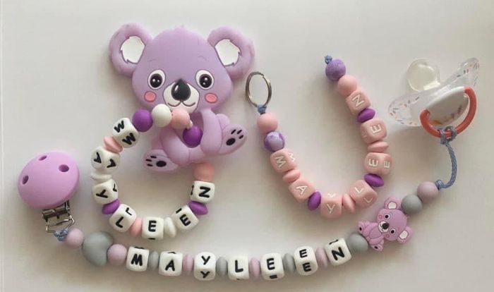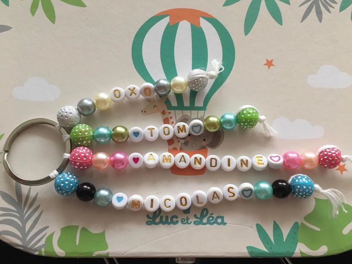 Je crée des attache tétine, attache doudou, anneau de dentition et porte clef de votre choix, Prix variable selon les modèles