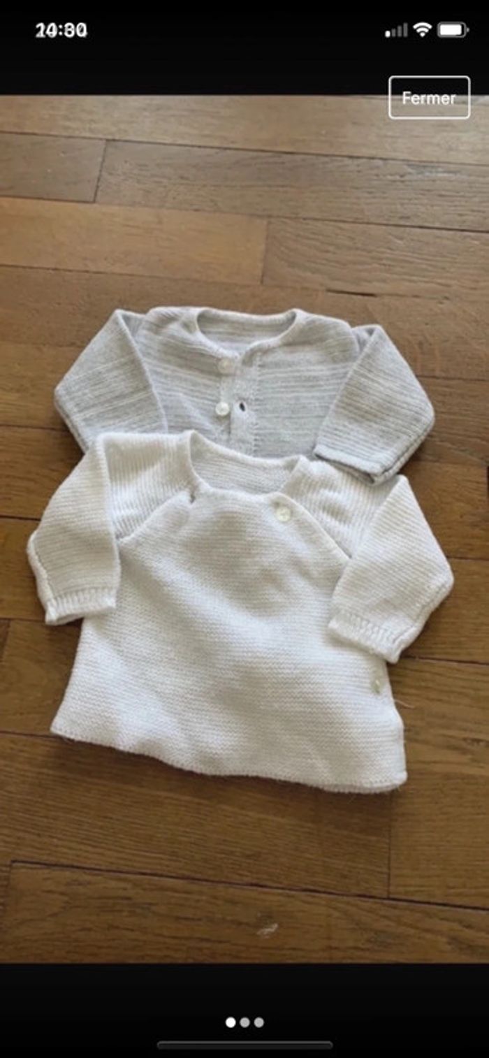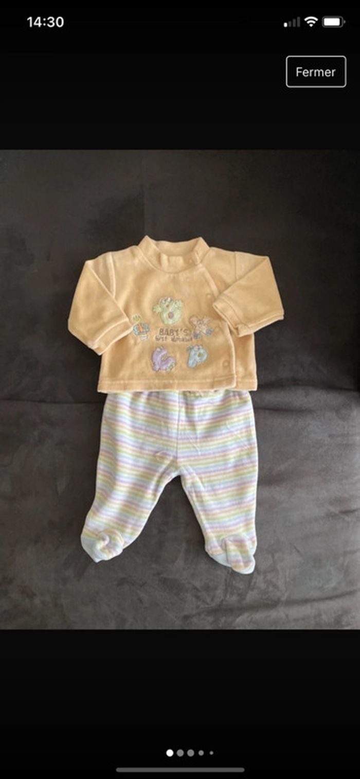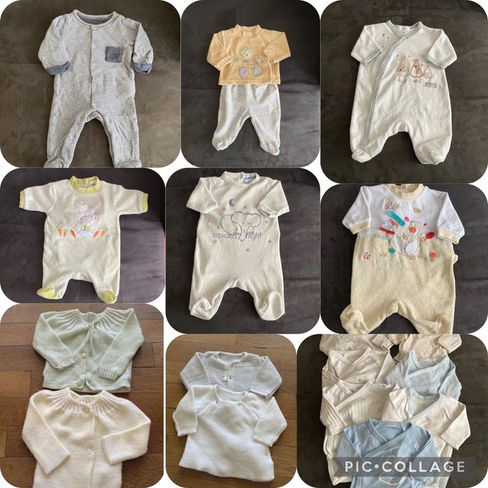 Lot garçon Comprend - 7 bodies manches longues - 4 brassières/ gilets - 5 pyjamas dont 1 neuf - 1 ensemble C&A Le tout en très bon état Différentes marques dont du pareil au même, kitchoun, C&A… Prix négociable