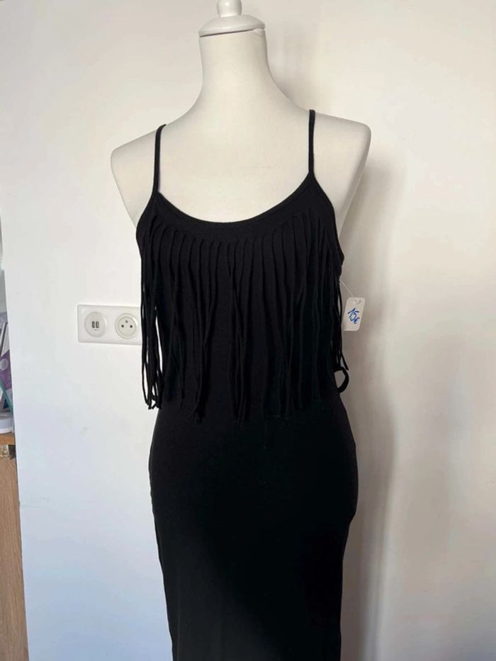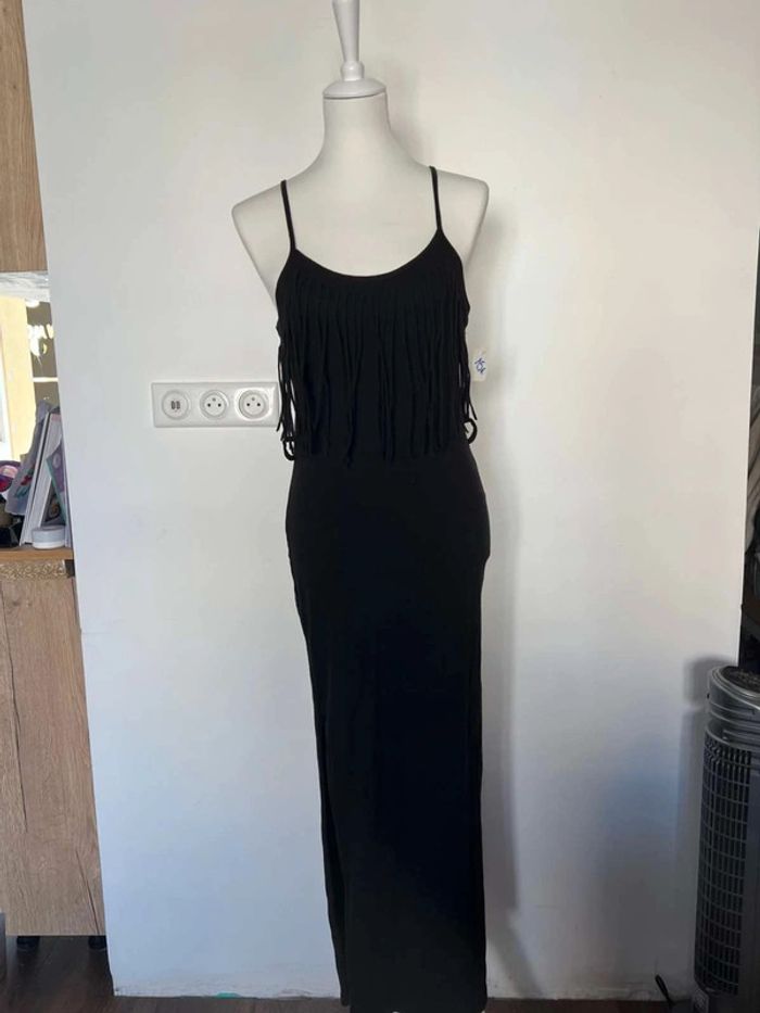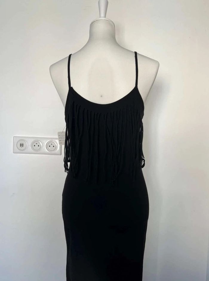 Longue robe Taille unique Été Neuve avec étiquette Frange toute noire Et fente mi jambe