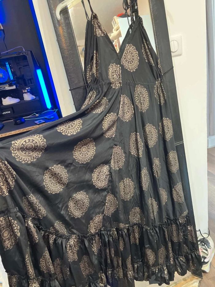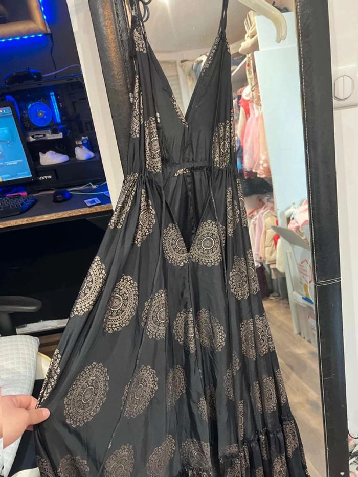 Très élégante robe 80% soie 20% polyester Dos nue Attache avec cordon au cou et dos Magnifique Neuve!!!!!