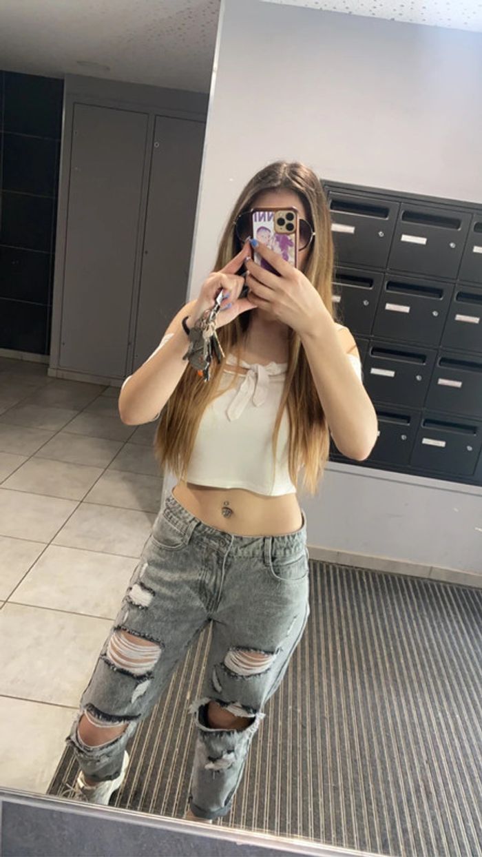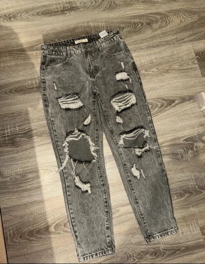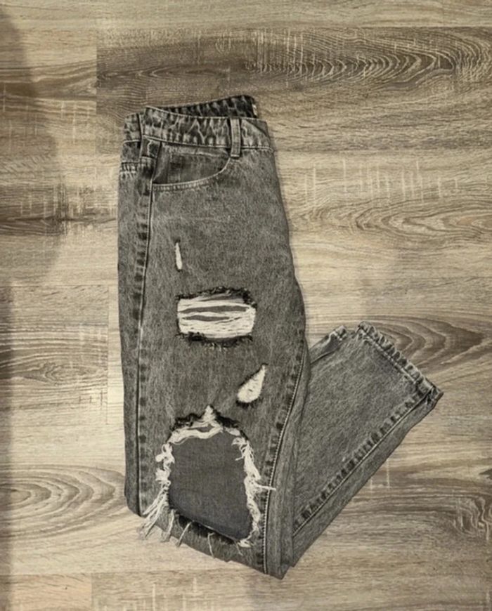 -Jean troué pour femme, avec de vraies poches + possibilité de mettre une ceinture.