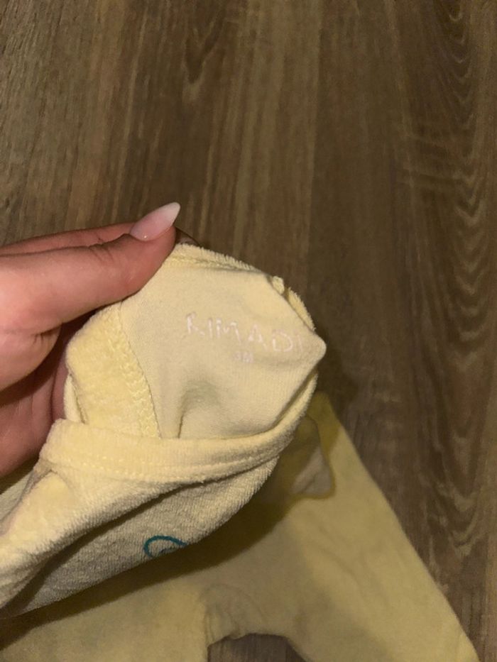 -pyjama une pièce en velours, mixte. -taille: 3 mois. -marque: kimadi. -en très bon état.