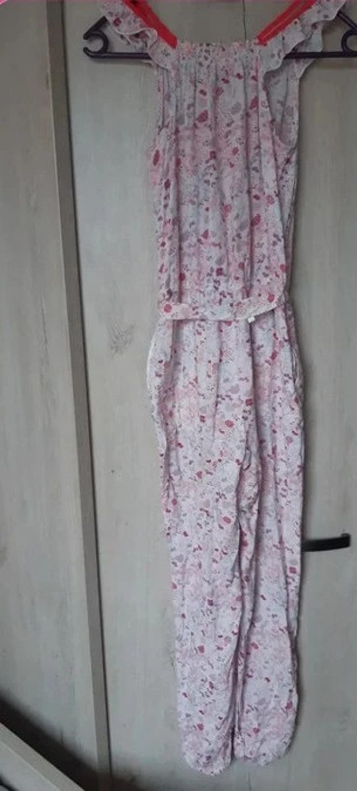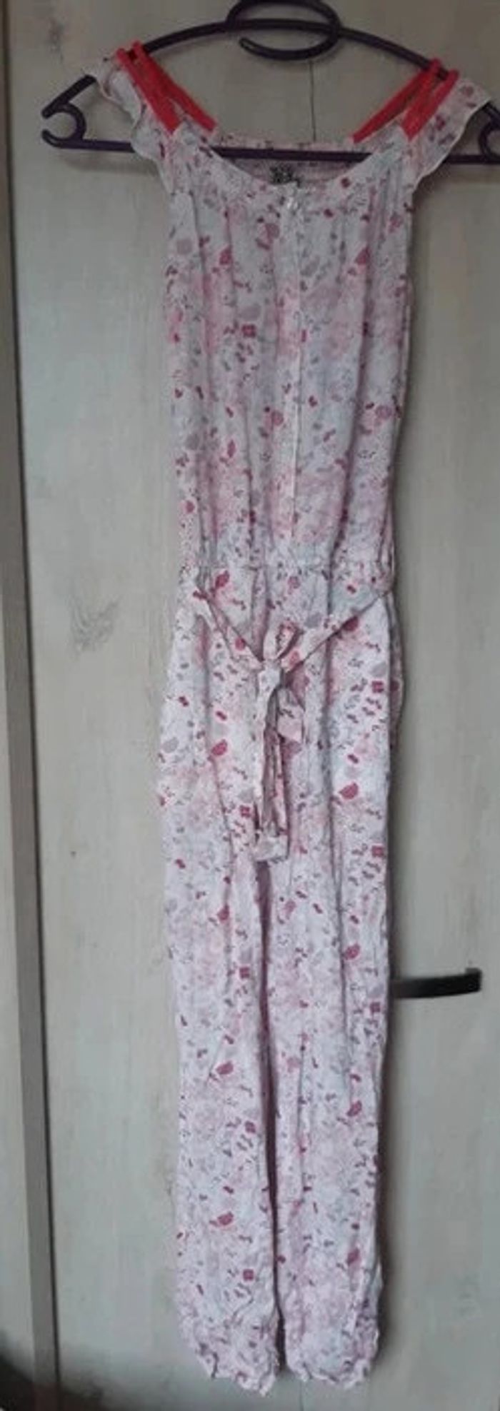 PRIX DE VENTE FERME MERCI Combinaison longue avec sa ceinture assorti En viscose (matière légère et très agréable à porter) Fronces en bas de jambe (très jolies) Rose / rose fuchsia motif fleuris tape à l'oeil 10 ans en parfait état (à noter petite tâche "jaune clair, voir dernière photo) Aucune usure, aucun accro, couleurs vives Pour visualiser tous ce que je possède en 10 ans : #ambre6269010ans