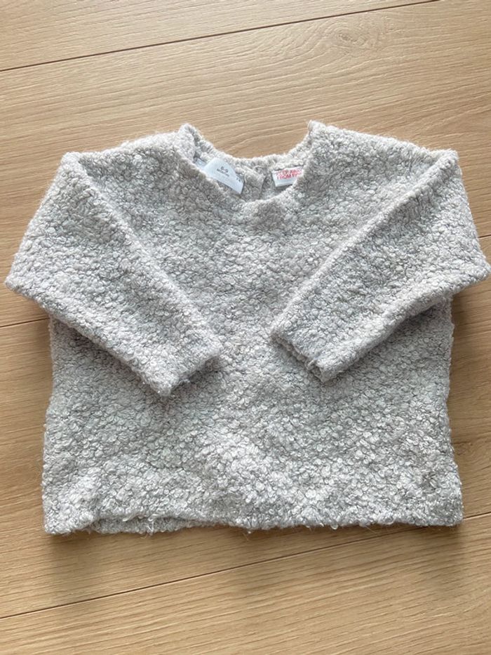 Joli pull bouclé gris beige Zara 74cm - photo numéro 1