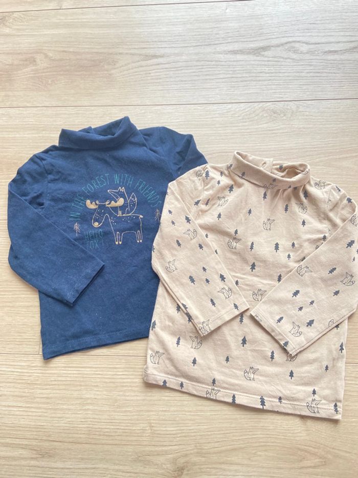 Lot de 2 cols roulés motifs renards et forêt beige et bleu