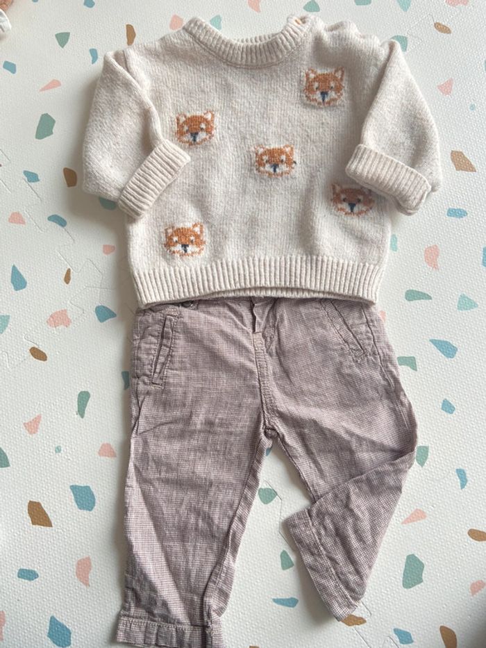Ensemble pull Kiabi motifs renards et pantalon pieds de poule Chicco
