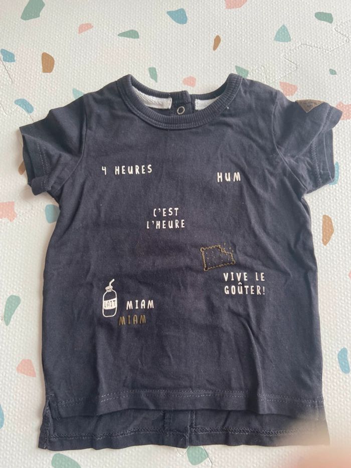 T shirt noir motifs goûter Kiabi 6 mois - photo numéro 1
