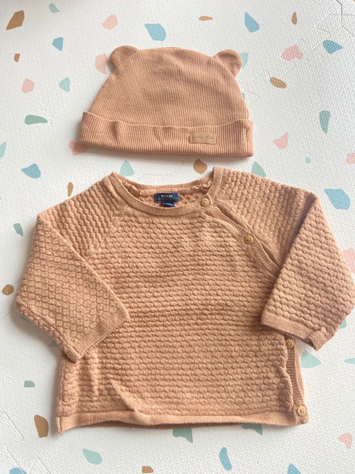 Ensemble gilet en maille camel Kiabi et bonnet assorti Zara
