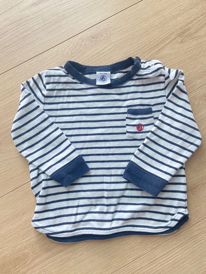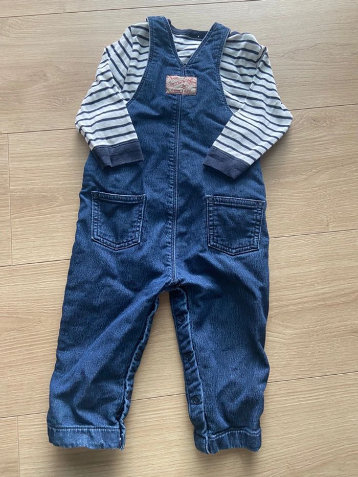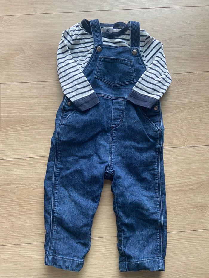 Jolie salopette en jean et marinière Petit bateau 12 mois