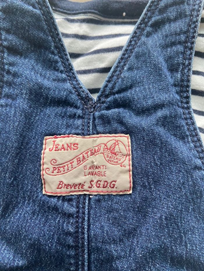 Jolie salopette en jean et marinière Petit bateau 12 mois - photo numéro 1