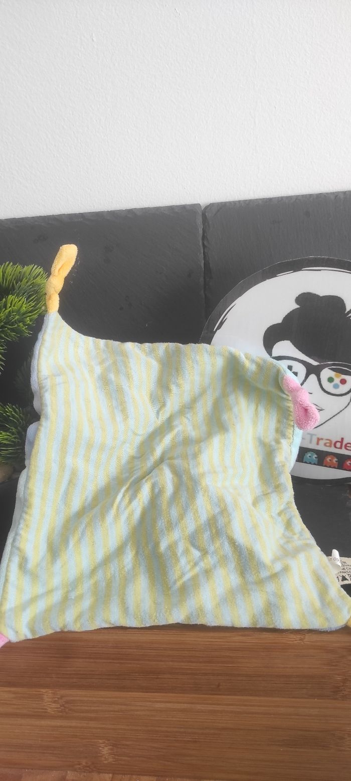 Mots d'enfants doudou chien plat carré bleu blanc maison oiseau Rayé Jaune Rose - photo numéro 2