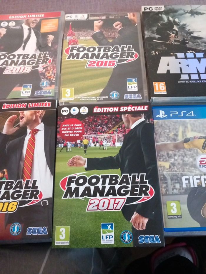 Vend lot de jeu pc de 2015 à 2017 ancien mes pour les collectionneur ou fan de foot le lot de 6 dvd 30 euro
