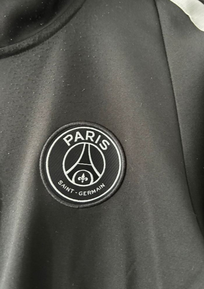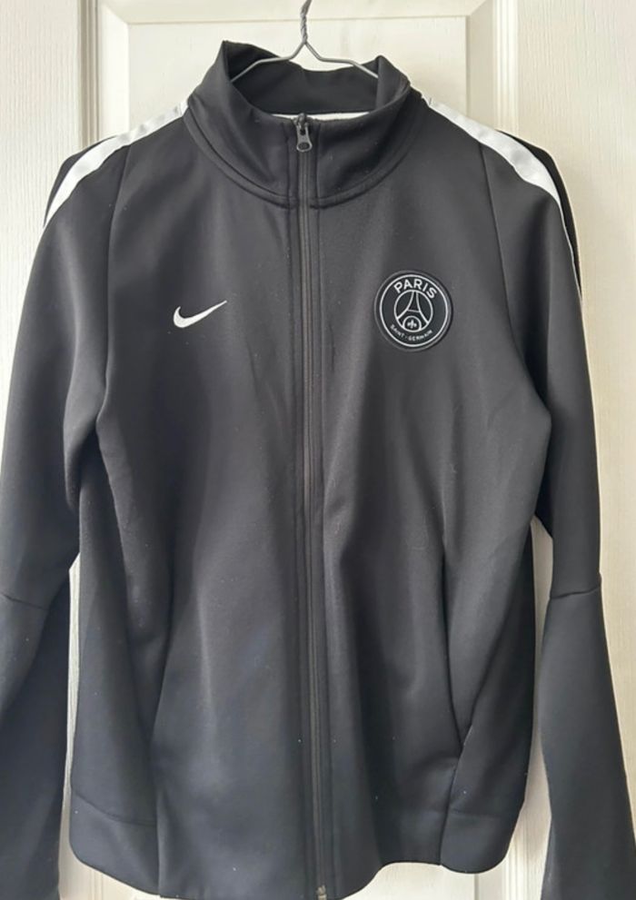 Veste de jogging Nike Paris Saint-Germain noir. C’est une taille S, convient pour un homme ou une femme. En très bon état.
