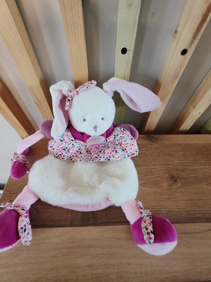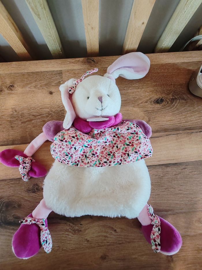 Doudou marionnette Lapin Cerise blanc rose fleurs DOUDOU ET COMPAGNIE Excellent état Toute douce 16 euros Envoi en relais