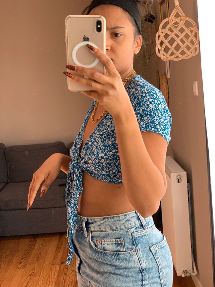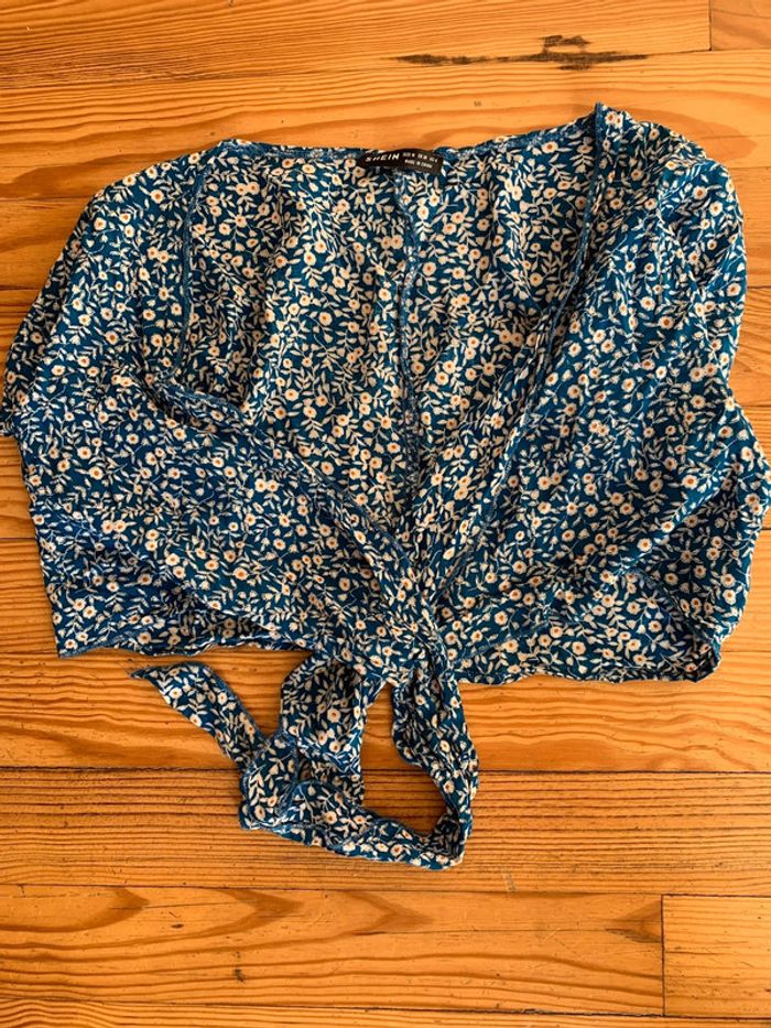 Top croisé bleu et fleurs - photo numéro 1