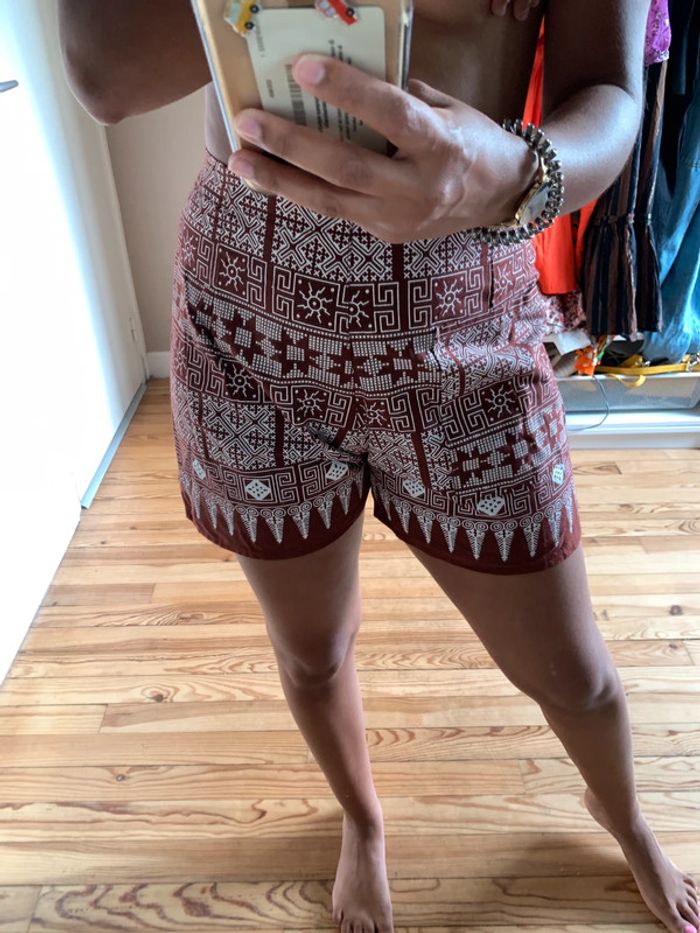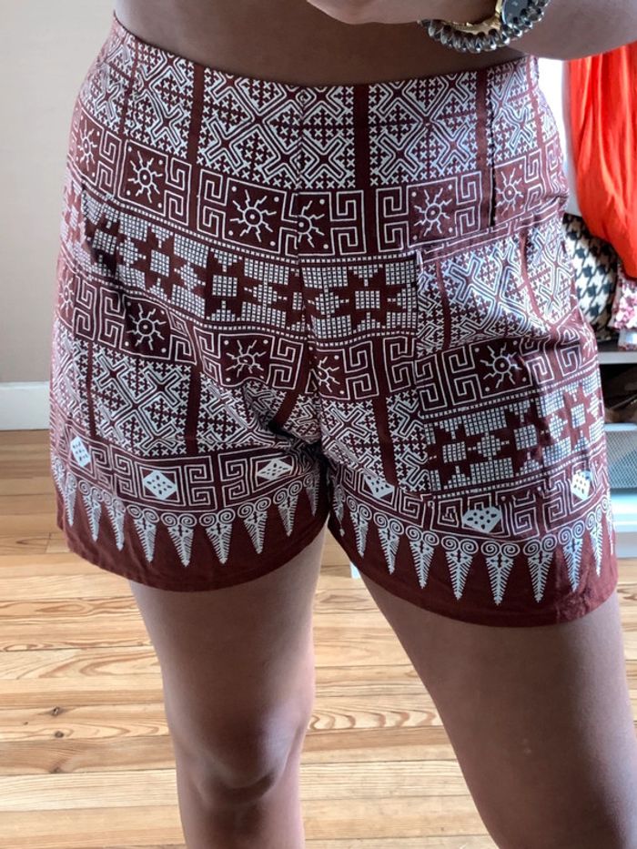 Short taille haute marron et blanc à motifs - photo numéro 4