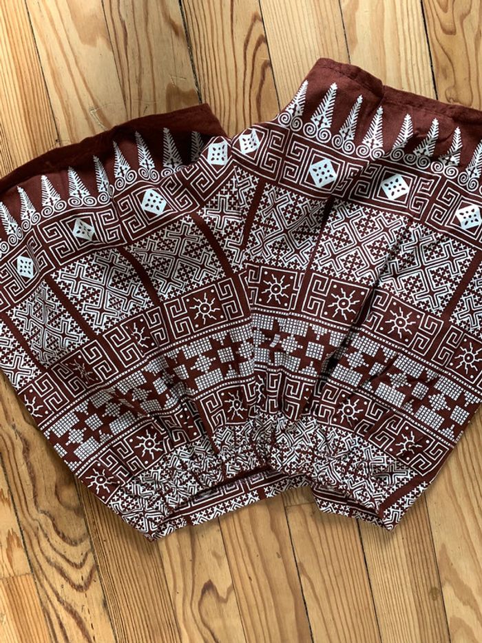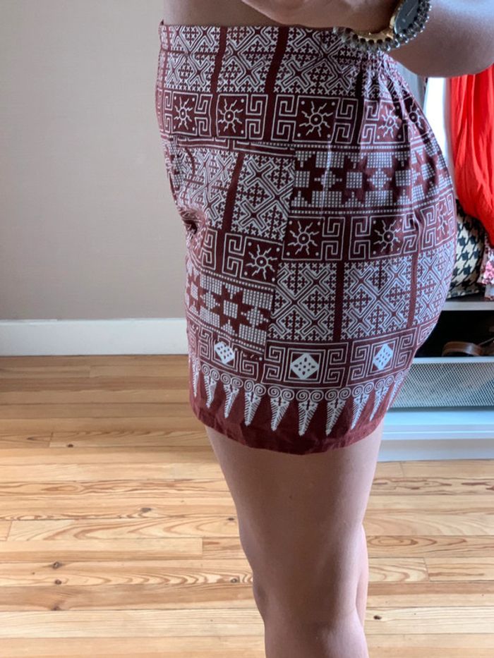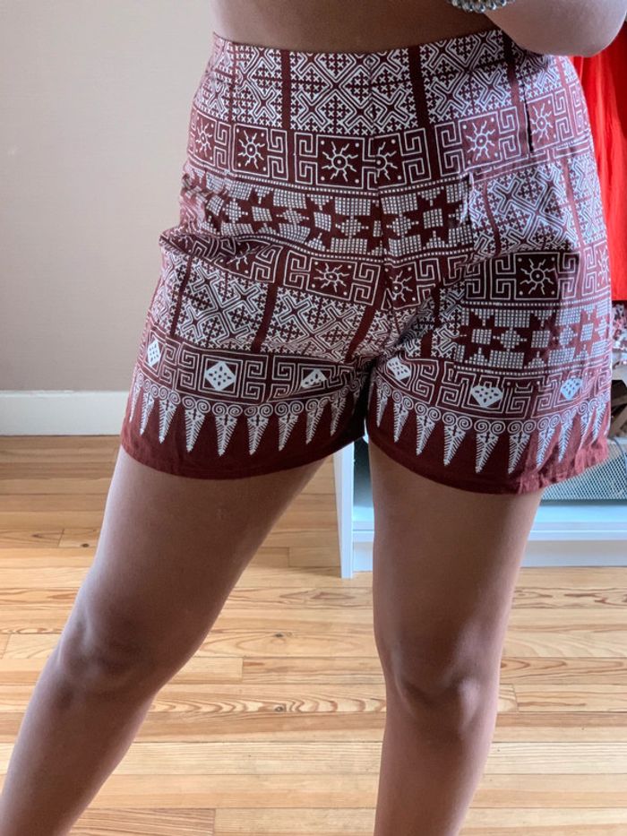 Short taille haute marron et blanc à motifs - photo numéro 3