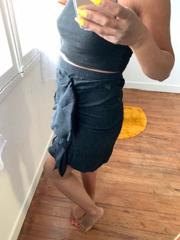 Jupe portefeuille en soie Paul & Joe à volants noire - photo numéro 5