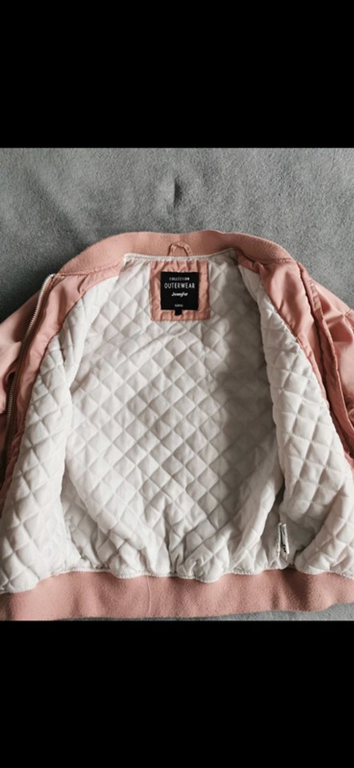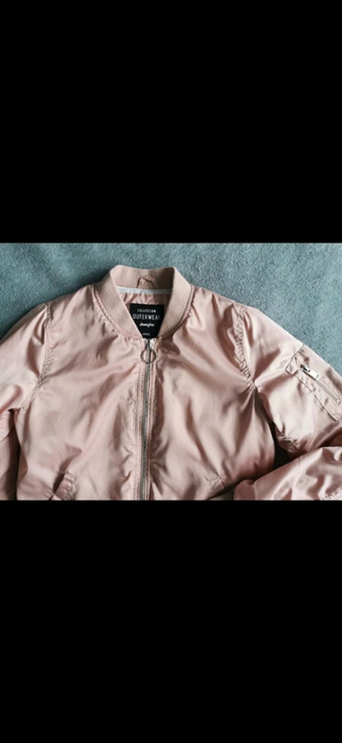 Veste bombers zippée taille XS Jennyfer rose pastel avec poches, bon état.
