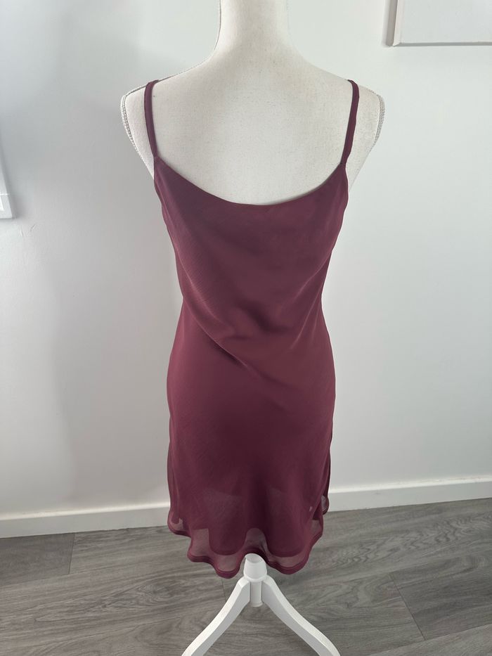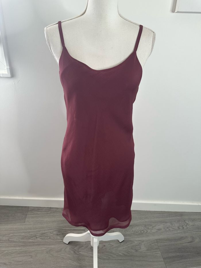 Robe - Excellent état - Taille 40/42 équivalent L/XL Dimensions en bas de l’annonce - Fines bretelles - Vieux rose, violine - En voile - Doublure intérieure - Fines bretelles - Vintage, années 80’ Dimensions: - 49cm niveau aisselles - 93cm de long