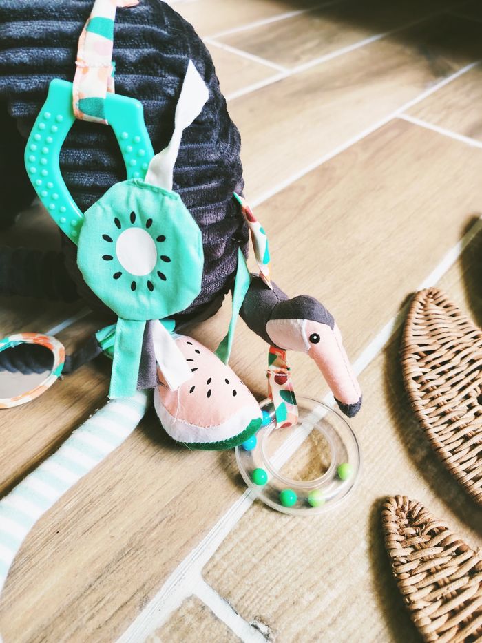🎀 Papier bruissant, miroir , anneau de dentition, grelot... matières différentes à découvrir...