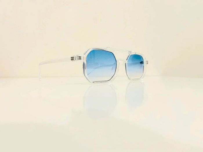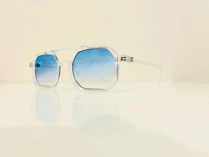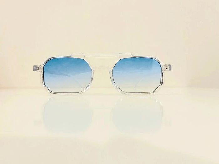 Lunette de soleil mixte transparente verres bleus dégradés UV protection taille small - photo numéro 1