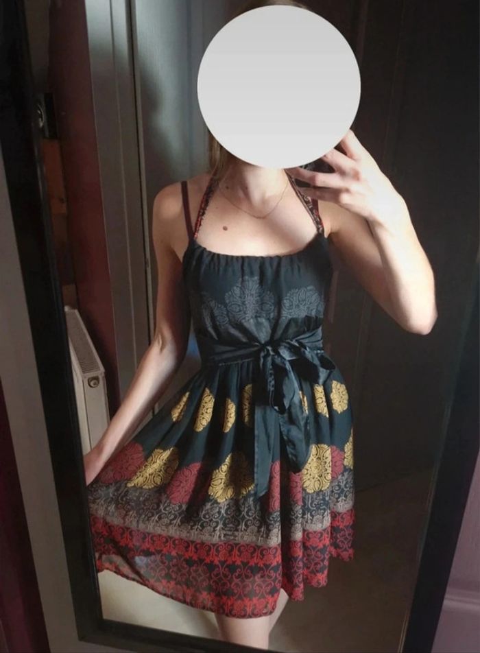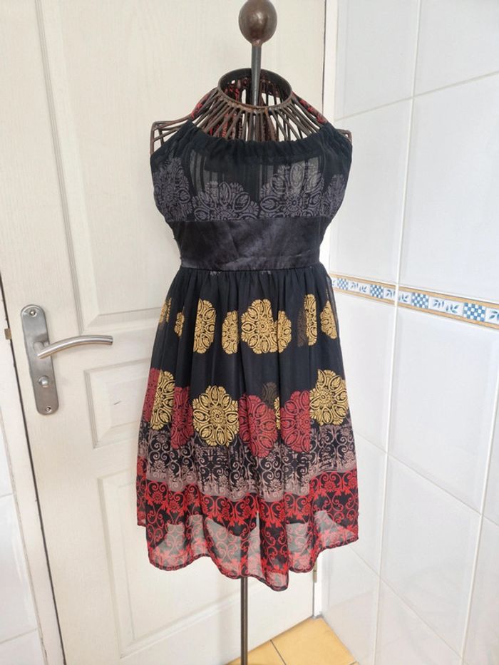 Jolie robe noir coloré à motifs fluide femme été taille S/36 - photo numéro 1