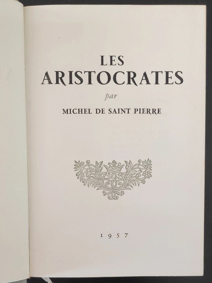 #_Livre_ Michel de Saint-Pierre - Les aristocrates 354 pages Éditions de la Table Ronde (1957) Très légèrement décoloré sur la couverture. Le reste du livre est en excellent état