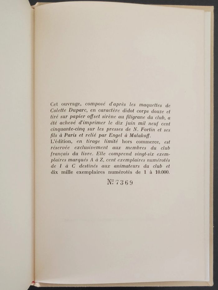 #_Livre_ Eugène Fromentin - Dominique 326 pages Édition en tirage limité réservée aux membres du club français du livre Exemplaire n° 7369 / 10000