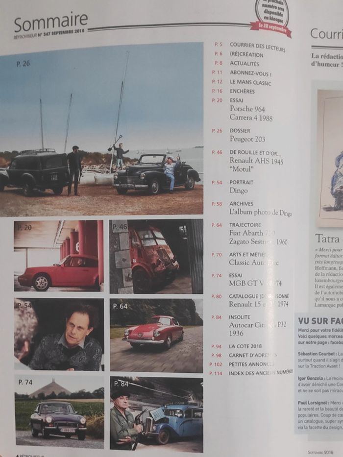 #_Rétroviseur_ numéro 347 (septembre 2018) Dossier Peugeot 203 Porsche 964 Carrera 4, Renault AHS, Fiat Abarth 750 Zagato, MGB GT V8, Renault 15 & 17, Autocar Citroën P32... 114 pages D'autres numéros disponibles dans mon dressing #_Porsche_
