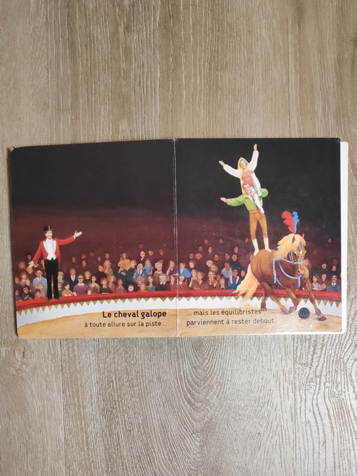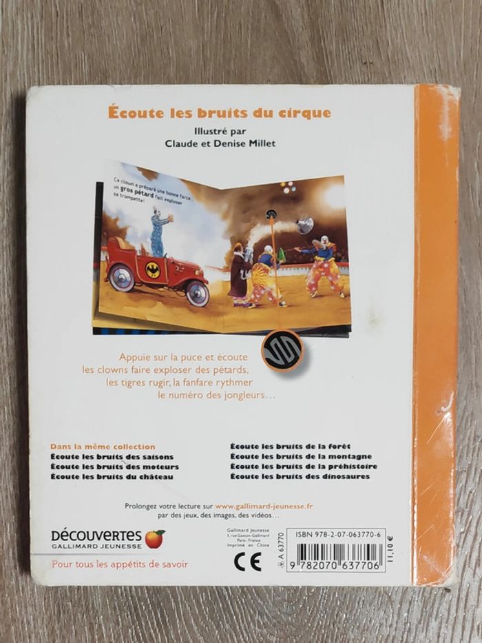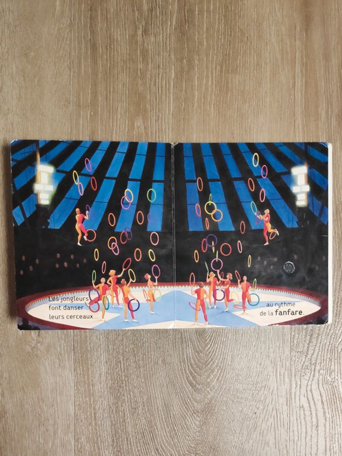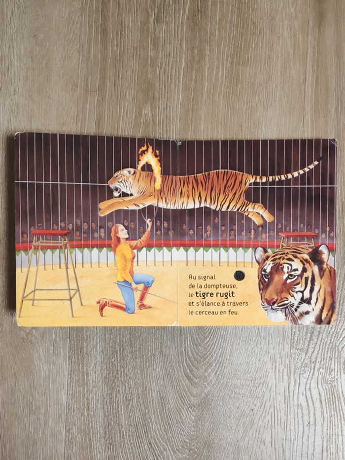 #_Livre_#_enfant_ Livre sonore : appuie sur la puce et écoute les clowns faire exploser des pétards, les tigres rugir, la fanfare rythmer le numéro des jongleurs... Livre cartonné de 12 pages