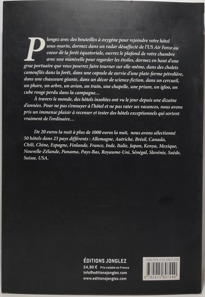 #_Livre_ Hôtels insolites De 20 à plus de 1000 euros la nuit, une sélection de 50 hôtels dans 23 pays différents. 232 pages