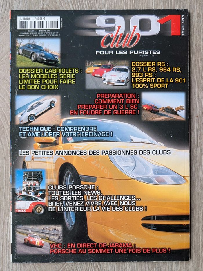 #_Porsche_ Porsche Club 901 numéro 1 (février 2002) 911 Carrera RS 2.7 / 964 RS / 993 RS, transformation d'une Carrera 3.0 en RS 3.2, 911 Speedster 3.2 / 964 Turbo look / 993 cabriolet , préparation Almeras 3.3 Turbo 2, 356 B, 993 Carrera S, 964 Carrera 2 Targa Strosek, 911 Turbo 2... 92 pages D'autres revues Porsche disponibles dans mon dressing (Flat 6, RS mag...)