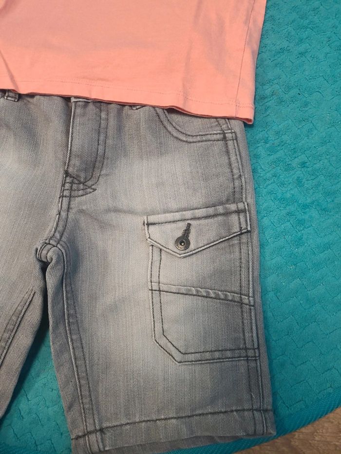 Short cargo gris Verbaudet Tee shirt oversize 3/4 ans corail