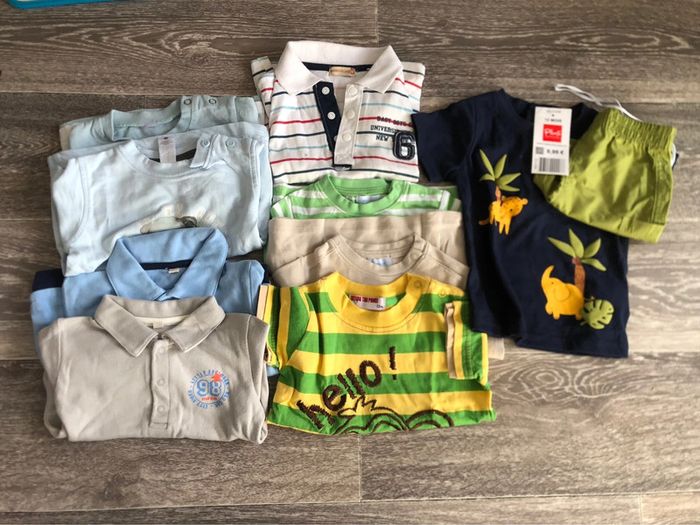 Lot habits mi saison/été 12 mois garçon Très bon état 2 hauts manches longues 2 polos manches longues 3 t-shirt 1 polo manches courtes 1 ensemble neuf short et t-shirt