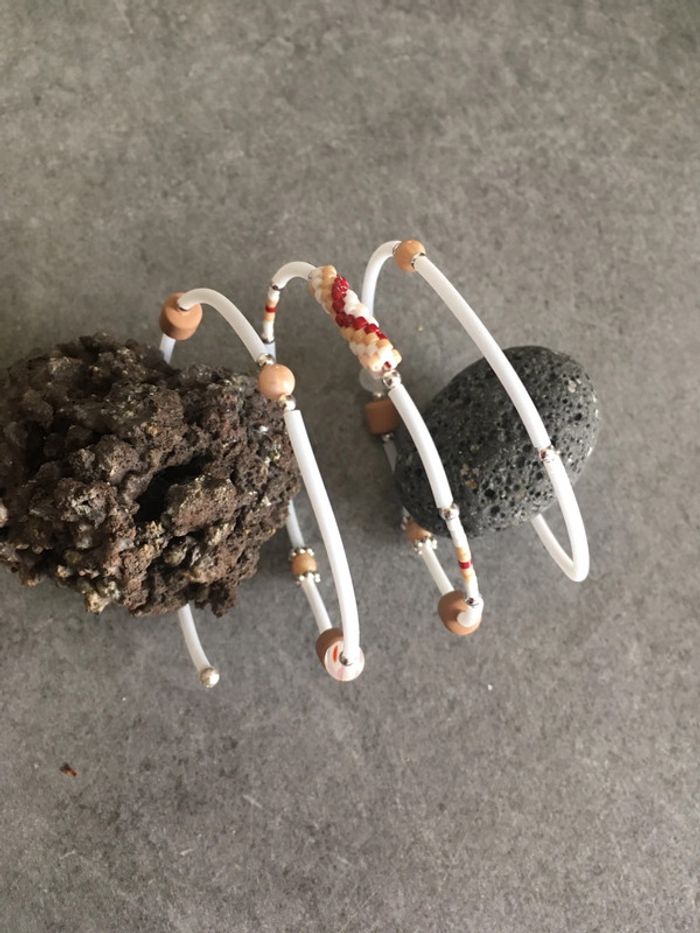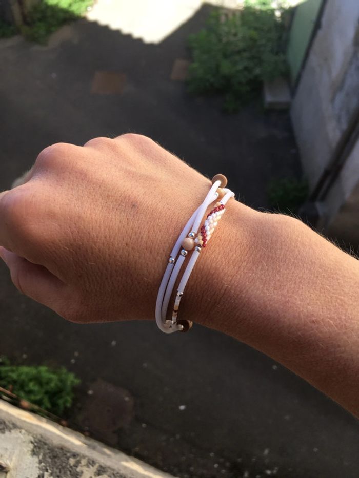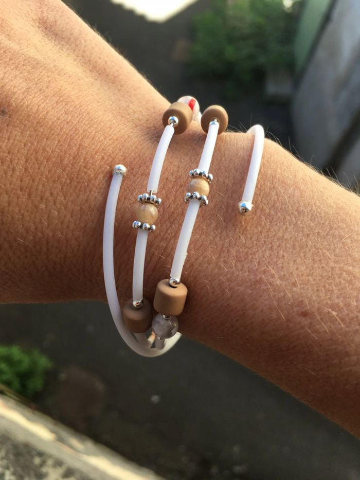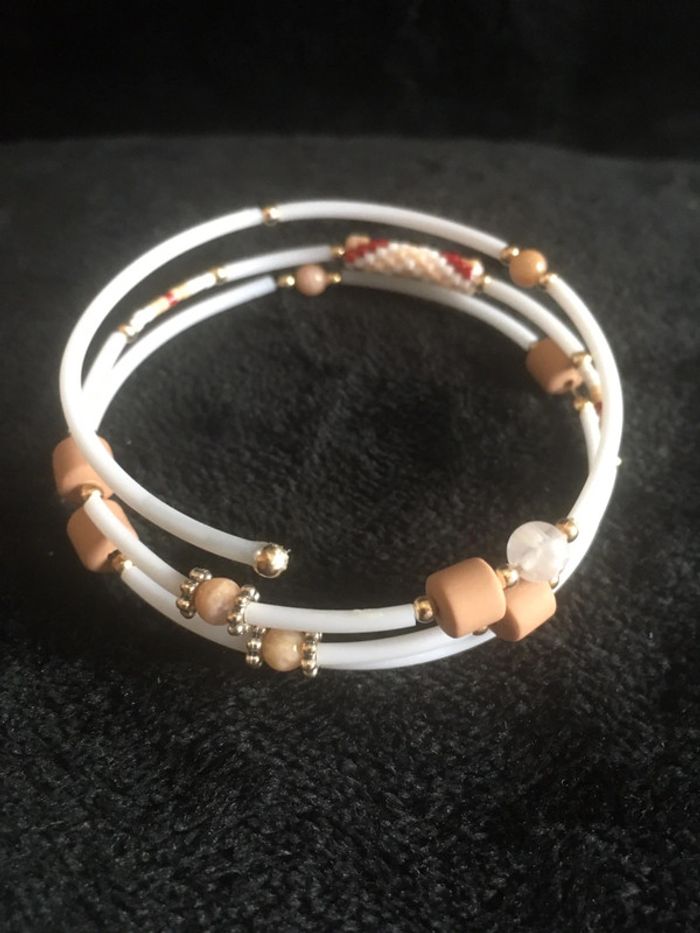 Bracelet multirangs à mémoire de forme . Perles gemme pierre de lune, embouts argent 925, perles tubes pâte polymère, perles rondes placage argent fin. Création possible sur mesure avec vos couleurs. Contactez moi 😉 beaucoup de modèles réalisables 🤩 Réduction sur les lots 🤩 N’hésitez pas à demander pour toutes informations 🧐☺️