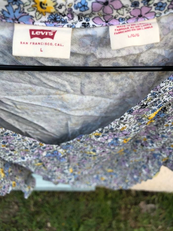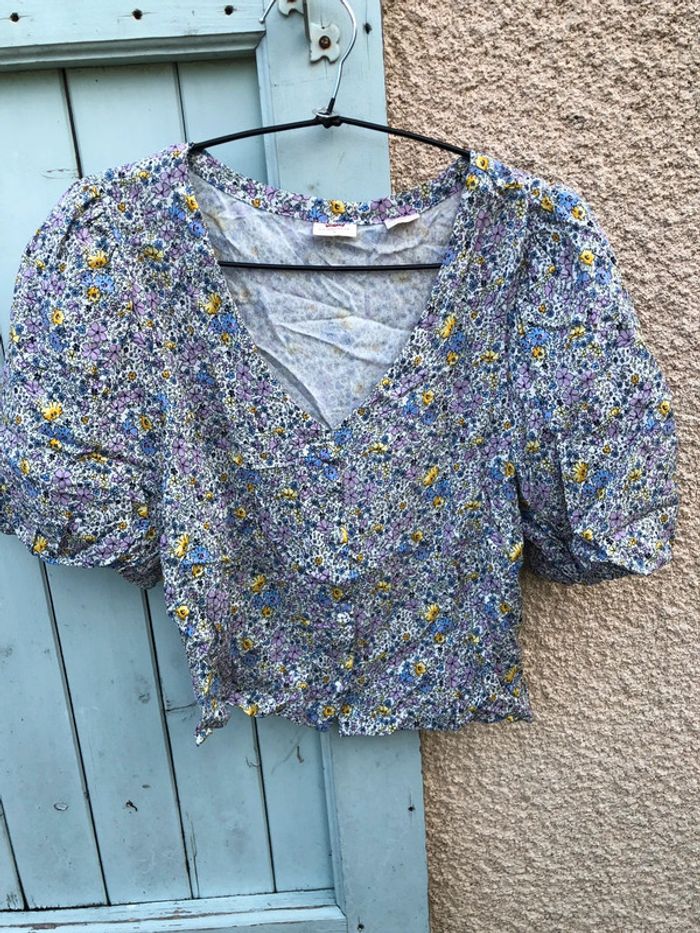 Top court levi’s taille L mais taille légèrement plus petit. Croq top vintage avec boutons devant façon chemisette. Manches rembourrées bouffantes Réduction sur les lots 🤩 N’hésitez pas à demander pour toutes informations 🧐☺️