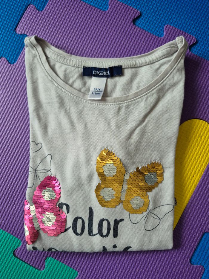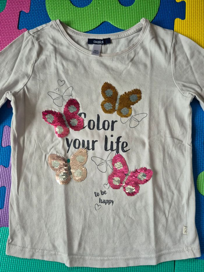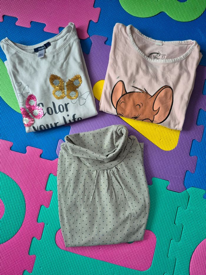 Afin de pouvoir financer les frais paramédicaux de nos enfants, j'offre une seconde vie à nos vêtements. Merci de bien lire la description : Lot de 3 hauts, manches longues, taille 6 ans: - Top Okaïdi, motifs papillons à sequins. La blanc n'est plus aussi éclatant mais reste en bon état - Top Tom&Jerry, motif Jerry, porté souvent, les petites traces grises au dessus de la tête de Jerry étaient brillantes mais les brillants sont partis au lavage, reste en bon état malgré tout - Col roulé à pois, en bon état -> Les articles sont stockés dans des sacs sous-vides pouvant les froisser. -> RMP possible dans le département 54 / proche 88 (plus de précisions dans ma bio) 283