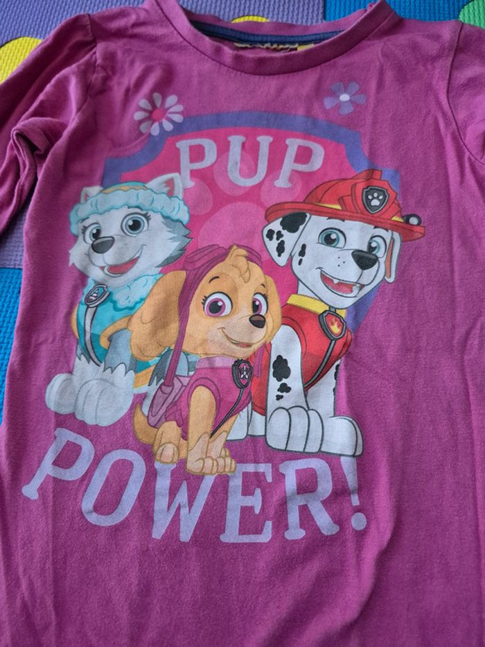 Afin de pouvoir financer les frais paramédicaux de nos enfants, j'offre une seconde vie à nos vêtements. Merci de bien lire la description : Lot de 4 t-shirts manches longues Pat’Patrouille en 6 ans : - 1 gris porté souvent mais reste en bon état - 3 roses (motifs passés/craquelés visibles sur les photos) -> Les articles sont stockés dans des sacs sous-vides pouvant les froisser. -> RMP possible dans le département 54 / proche 88 (plus de précisions dans ma bio) 275