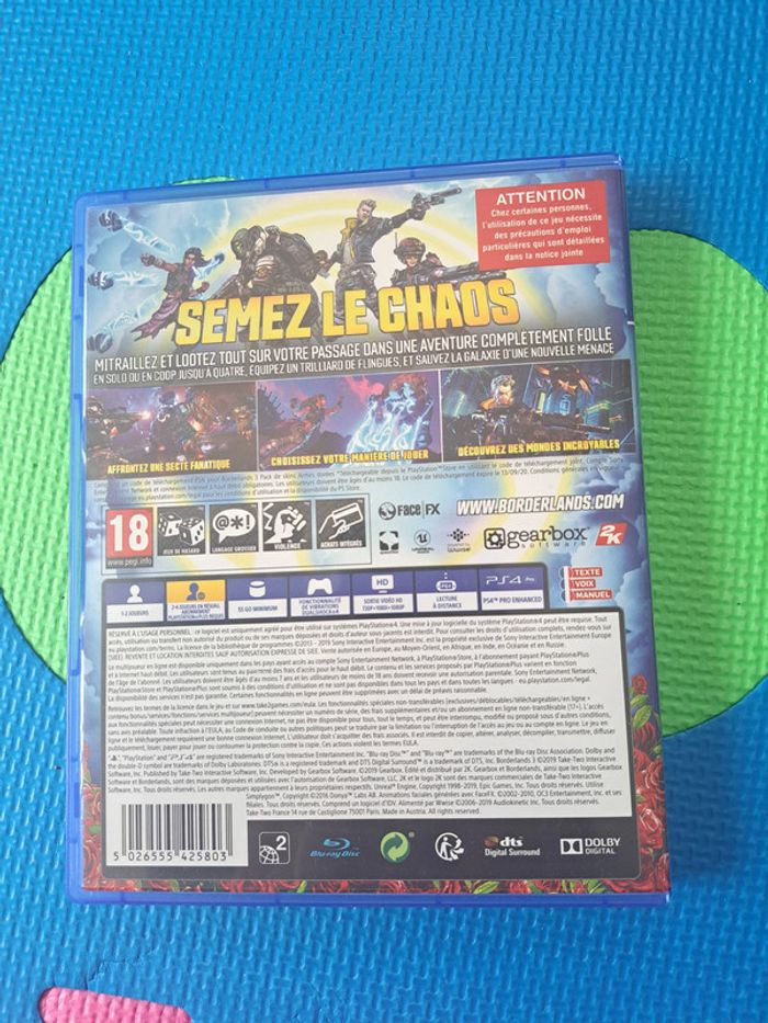 Afin de pouvoir financer les frais paramédicaux de notre fille, j'offre une seconde vie à nos objets. Merci de bien regarder les photos et lire la description : Jeu PS4 : Borderlands 3 En très bon état. Codes utilisés. Pas sérieux s’abstenir. Envoi soigné et filmé. -> RMP possible dans le département 54/proche 88 (plus de précisions dans mon profil) 126fe