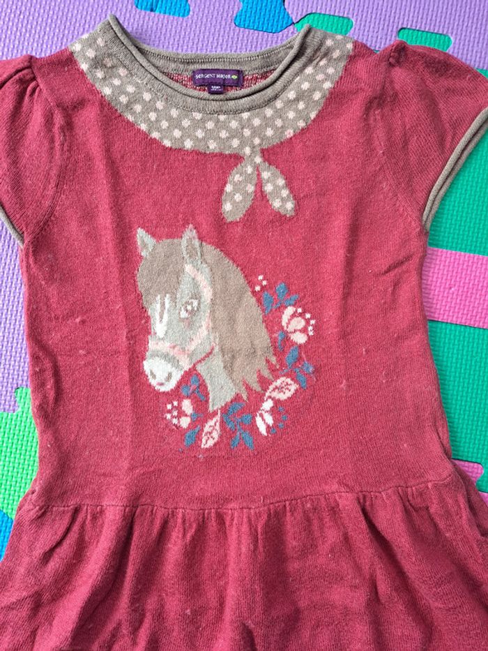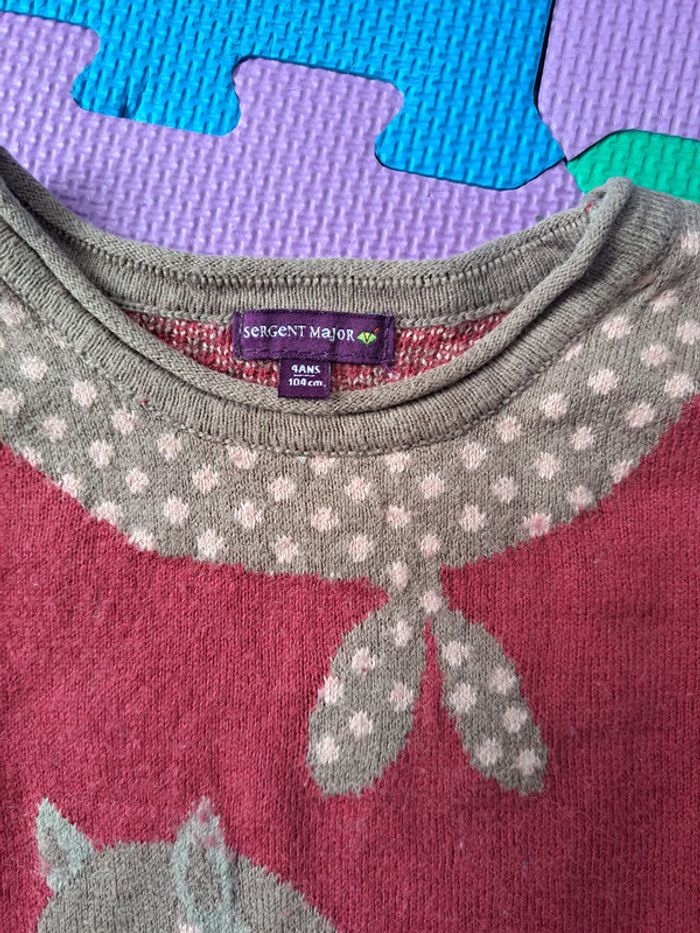 Afin de pouvoir financer les frais paramédicaux de notre fille, j'offre une seconde vie à nos vêtements. Merci de bien regarder les photos et lire la description : Lot de 2 robes-pulls à manches courtes en 4 ans : - Sergent Major, motif cheval, présence de bouloches visibles sur les photos - Disney Minnie Mouse portée souvent mais reste en bon état -> Les articles sont stockés dans des sacs sous-vide et peuvent donc être froissés -> RMP possible dans le département 54 / proche 88 (plus de précisions dans mon profil) 151