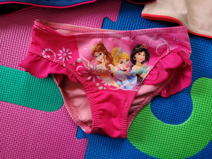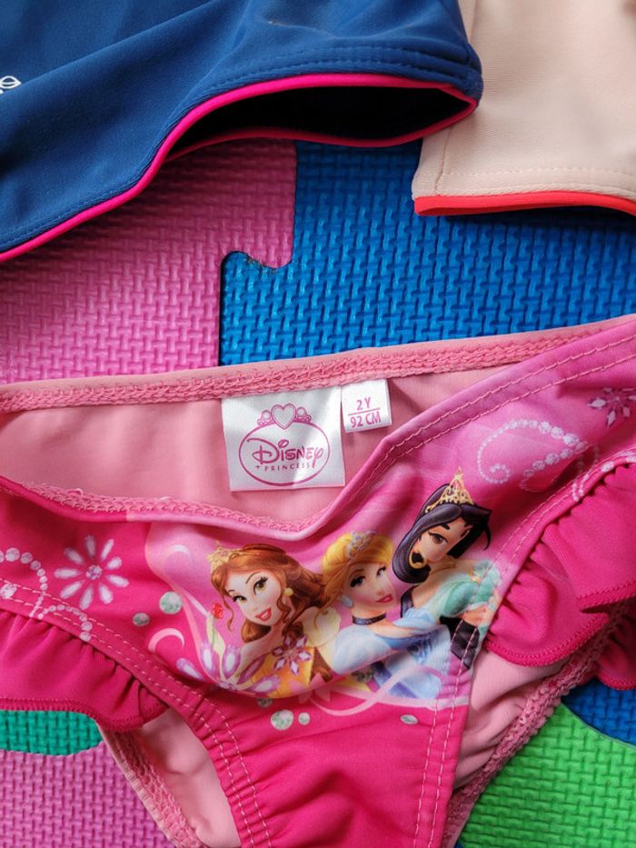 Afin de pouvoir financer les frais paramédicaux de notre fille, j'offre une seconde vie à nos vêtements. Merci de bien regarder les photos et lire la description : Lot de maillots de bain, taille 24 mois : - Un haut manches longues Olaian rose et blanc - Un haut manches courtes Nabaiji rose (présence de traces foncés sur les deux hauts - Un bas de maillot Disney princesses neuf, jamais porté -> Les articles sont stockés dans des sacs sous-vide et peuvent donc être froissés -> RMP possible dans le département 54 / proche 88 (plus de précisions dans mon profil) 104