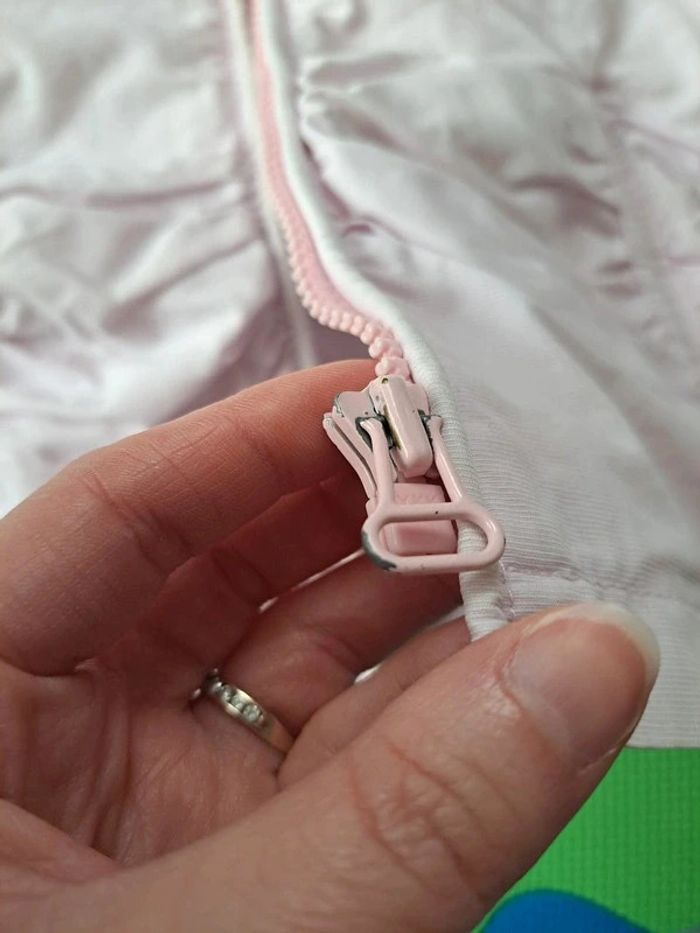 Afin de pouvoir financer les frais paramédicaux de notre fille, j'offre une seconde vie à nos vêtements. Merci de bien regarder les photos et lire la description : Veste rose clair, de la marque IKKS, taille 5 ans Des défauts visibles sur les photos (quelques traces/taches qui ne sont pas parties au lavage, fermeture éclair écaillée) -> Les articles sont stockés dans des sacs sous-vide et peuvent donc être froissés -> RMP possible dans le département 54 / proche 88 (plus de précisions dans mon profil) 205